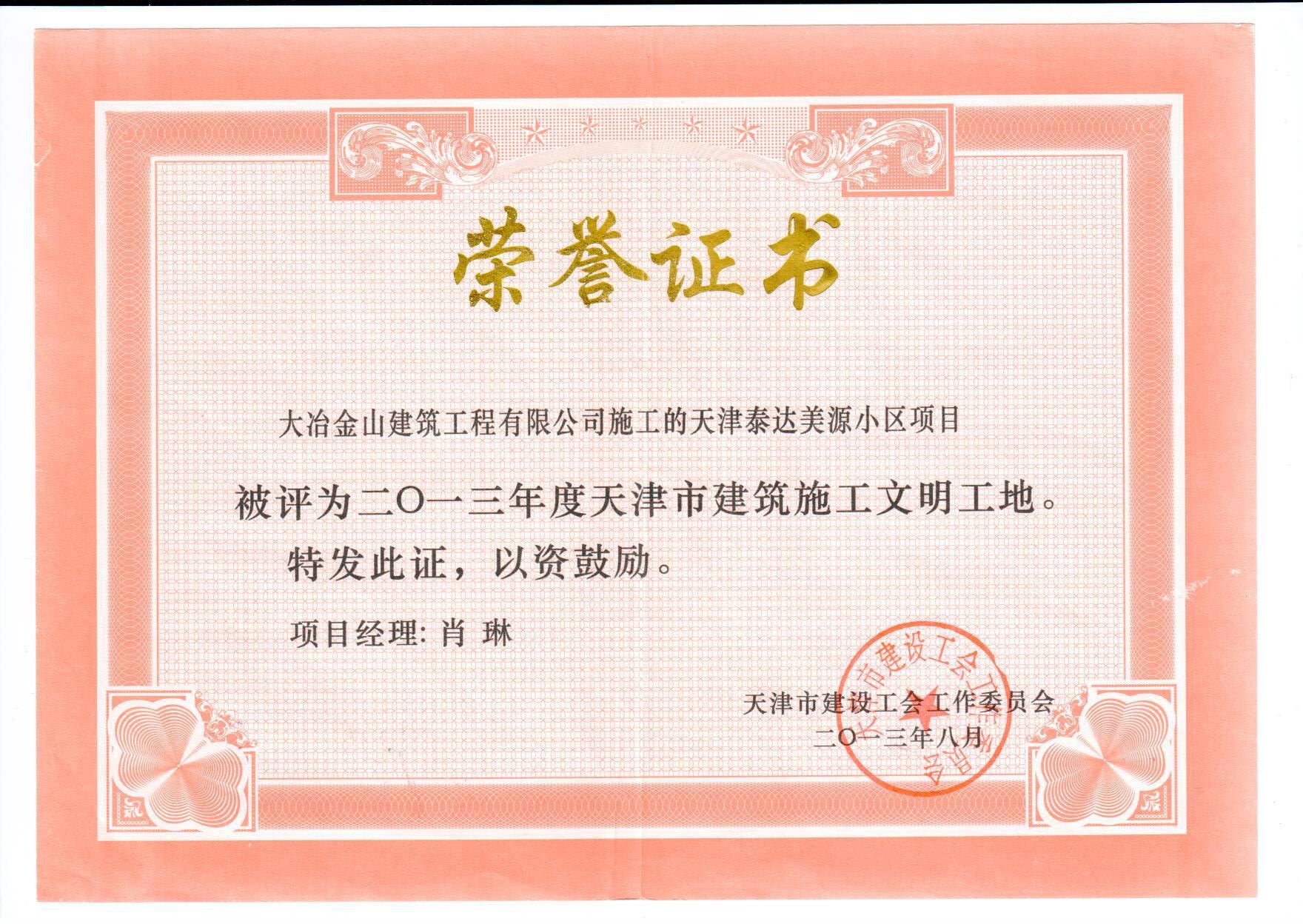 公司多年來先后承建了多項工程,已獲得多個優良工程,并多次被評為省、市50強企業,先后獲得先進單位、先進施工企業、安全生產先進單位等榮譽稱號。公司近幾年來民用建筑、古建筑、市政工程、園林景觀工程遍布全國相關省區,如:大冶市金福花園、集寧現代物流園區絲路文化博覽園二期建設項目一標段、烏蘭察布市集寧戰役紀念館周邊改擴建二期建設項目、烏蘭察布市人民公園博物館廣場周邊景觀工程、錫林浩特市錫林湖、濕地生態水系治理工程PPP項目(二標段)、合肥開福寺、明教寺修復,巢湖市相隱寺、馬鞍山小九華寺建設等。深受建設單位和相關行業管理部門的廣泛好評。